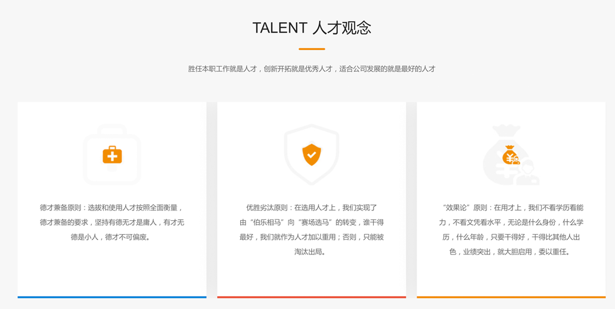 公司坚持人尽其才,人尽其能的用人原则,为人才的成长营造一个公平竞争的平台和实现自身价值的发展空间